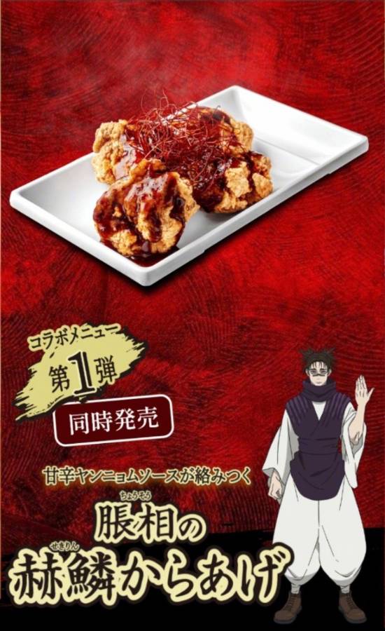 第二弹(3月25日至4月22日)的菜品包括“伏黑惠的嵌合暗翳庭担担面”和“秤金次的热爱之热炒饭”;第三弹(4月23日至5月20日)则推出“乙骨忧太的纯爱・白拉面”与“熊猫饺子”。