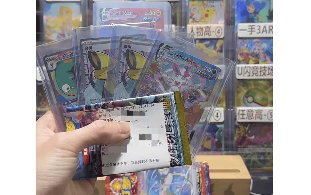 这位卡牌主播向记者介绍,他见过有人花1600多元买了24包,一包都没中,也见过有人中一张SAR卡就赚了一笔,按市场价折现。“一箱货通常只有一张SAR卡,由于宝可梦卡牌是不保配置的,有些稀有卡六七单才可能出一张,甚至不出,稳赚不赔。”他自己也玩过,亏了5000元,“新人单抽基本就是送钱。”