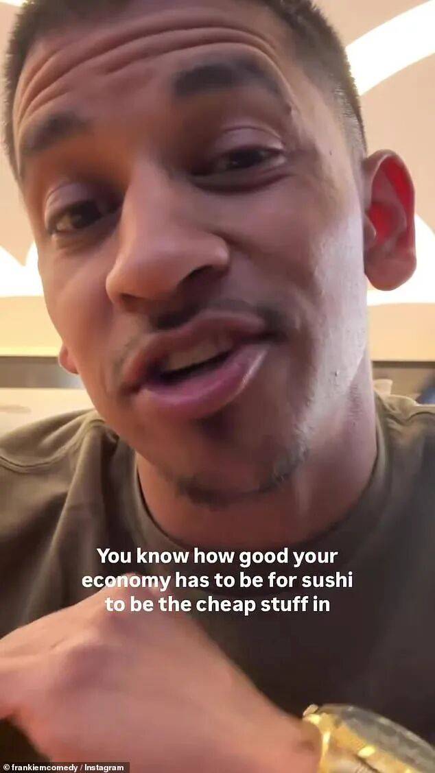 这位来自旧金山的喜剧演员甚至在他的 @frankiemcomedy 账号发布的帖子里宣称,如果寿司在这里卖得这么便宜,澳洲的经济一定很“好”