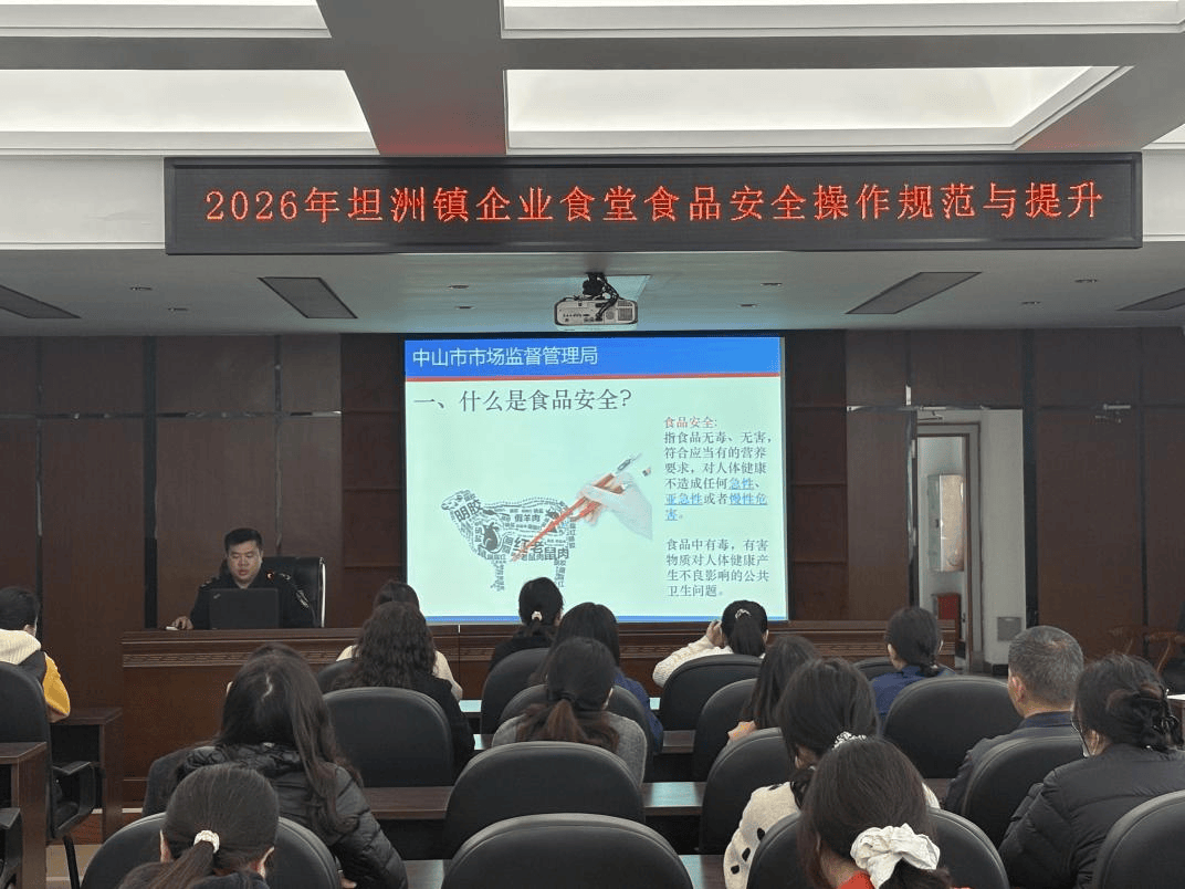 坦洲市场监管分局组织召开2026年坦洲镇企业食堂食品安全操作规范与提升培训会,累计40多名集中用餐单位管理人员参会。会议运用反面教材开展警示教育,围绕“认识食品安全”“餐饮食品安全管理要求”“如何提升餐饮食品安全”三大核心模块深入讲解,为各集中用餐单位清晰划出食品安全“红线”。会议要求集体用餐单位主动配备“互联网+AI监管”系统,实现加工经营场所视频信息互联互通、监管数据实时共享,推动食品安全监管工作向科技化、智能化、规范化深度转型。